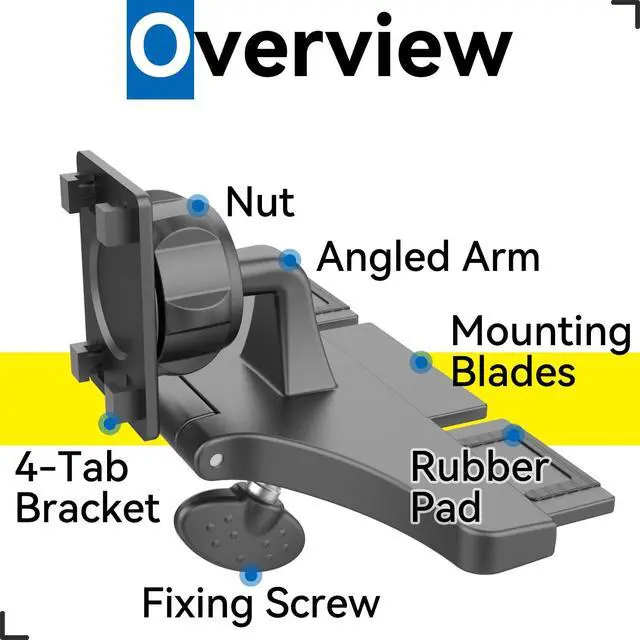 Standard 4-Tab Bracket Mount: Designed with a sturdy 4-tab bracket adapter, this CD car mount is compatible with most CarPlay screens featuring a 4-hole mounting pattern. Ensures a secure and stable hold for your device even on bumpy roads. NOT suitable for CarPlay screens with built-in dash cams