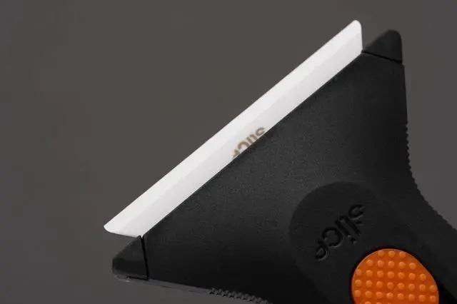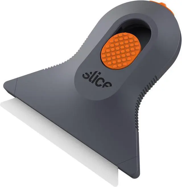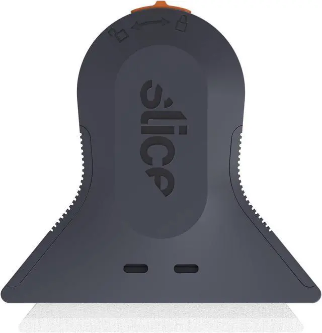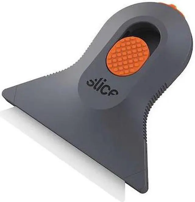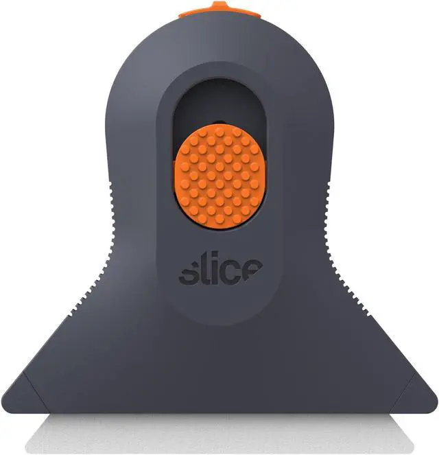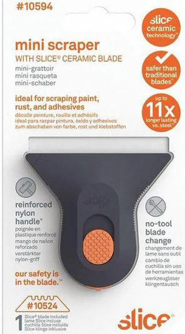 This smaller version of Slices original manual scraper uses a narrower, thinner blade and is intended for tight spaces and small surfaces. While most people prefer a straight-edge blade (like Slice 10524 or 10525 blades), this handy tool is also compatible with the serrated 10523 blade. All blade options are finger-friendly and last up to 11x longer than metal blades. In addition, these 100 percent zirconium oxide blades are non-sparking, non-conductive, non-magnetic, and will never rust. The durable glass-filled nylon handle features a textured slider for comfort. Blade locks in place when in use and retracts fully afterwards for safety.