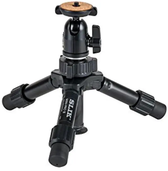 Please Note: The suction cup will not hold up cameras weighing more than 10 ounces! Check your camera's specification to learn its weight. Be sure the surface is clean before trying to adhere and SLIK MINI series tripods to any glass surfaces! Do not leave the SLIK MINI stuck to any glass surface for more than 60 seconds because the weight of the camera could cause it to fall. MINI PRO-III The same legs as the MINI PRO and MINI PRO-II, but the MINI PRO-III uses a newly designed compact ball head that is also used on the SPRINT and SPRINT PRO tripods.