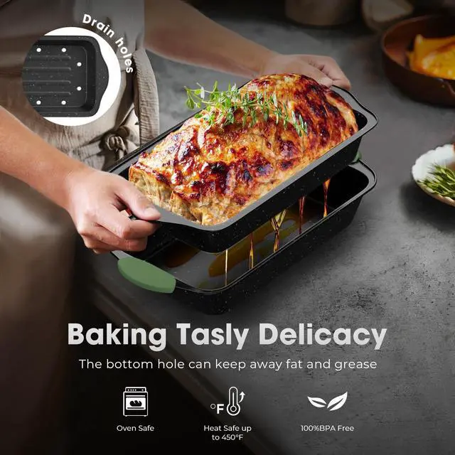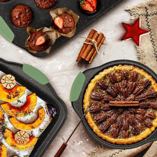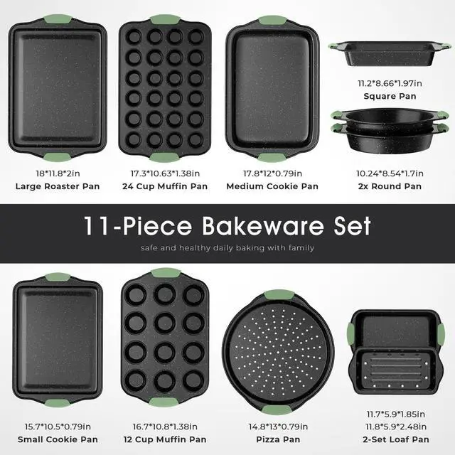 11-Piece Bakeware Set Durable Carbon Steel Construction: Crafted from 57% thickened carbon steel for lasting durability, this baking pan set is PTFE, PFAS, and PFOA free. These bakeware sets guarantee reliability for all your culinary creations