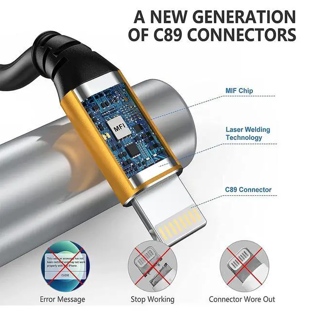 ![Alt view image 5 of 6 - iPhone Charger 10 ft,3-Pack Extra Long Lightning Cable [Apple MFi-Certified] iPhone Charger Cord 10 Foot Fast Charging for iPhone 13 12 11 Pro Max X XS XR/8 Plus/7 Plus/6/6s Plus/5s /5c/iPad mini Air](https://c1.neweggimages.com/productimage/nb640/C5U4D2603230F640ZDB.jpg)