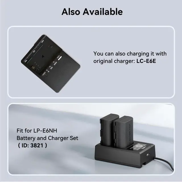 ![]() Replacement for LP-E6NH | ![]() Replacement for LP-E6P | ![]() Dummy Battery for LP-E6P | ![]() Charger for LP-E6NH | ![]() Replacement for LP-E6NH | ![]() Dummy Battery for LP-E6NH | ![]() Charger for LP-E6NH |
