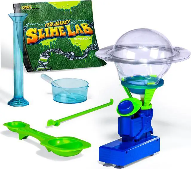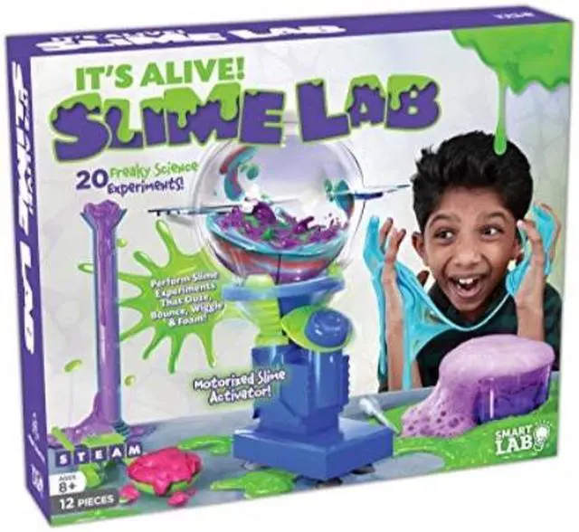 Measure- mix- and concoct icky-sticky goo like a real mad scientist with this one-of-a-kind laboratory kit. The motorized Slime-O-Nator makes your slimy concoctions appear to grow- dance- and mutate. Use the slime poker to stretch and bend your slime. Like all SmartLab toys- this goo-fy kit features projects that teach the science behind the fun. The 16-page lab book includes 20 slippery activities that use common household ingredients.