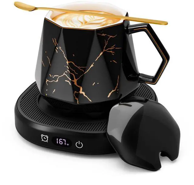 Coffee Mug Warmer & Unique Marbling Mug Set, Smart Heated Electric Cup Warmer for Desk Office, 4 Temperature Control Coffee Tea Beverage Warmer, 8 Hours Auto Shut Off, Christmas Birthday Gifts for Man