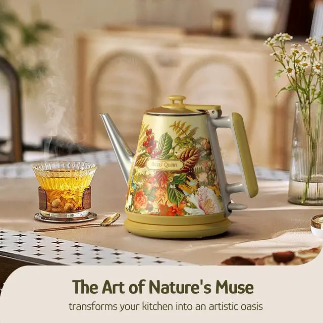 The Hazel Quinn electric kettle features a precision gooseneck spout designed for controlled water flow, making it ideal for pour-over coffee and tea enthusiasts. With a steady, narrow stream, it lets you achieve the perfect pour every time, enhancing flavor extraction with ease.
