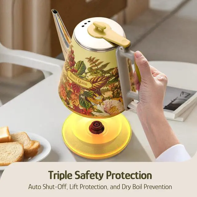 Equipped with advanced safety features, this kettle offers auto shut-off, lift protection, and dry-boil prevention, ensuring safe operation and peace of mind while you brew. Enjoy dependable heating with built-in protections designed to safeguard both the kettle and the user.