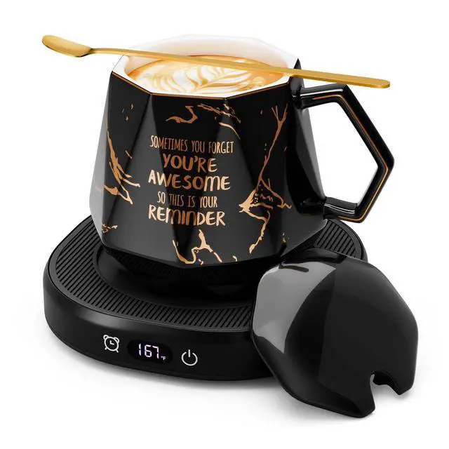 Coffee Mug Warmer & Awesome Mug Set, Smart Heated Electric Coffee Cup Warmer for Desk Office, 4 Temperature Control Tea Coffee Beverage Warmer, 8 Hours Auto Shut Off, Birthday Gifts for Women Man