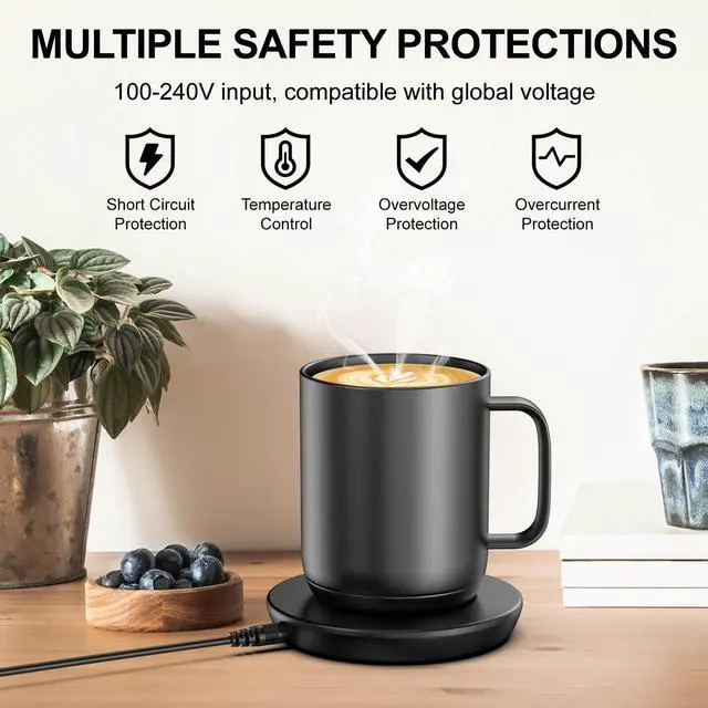 The coffee mug charger base features an upgraded 4-pin gold-plated contact design that is rust-resistant and durable, providing a long-lasting, resilient connection and preventing intermittent charging issues caused by loosening. Every charge is efficient and safe, ensuring your mug is always at the perfect temperature.