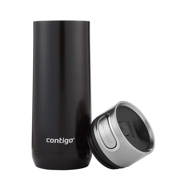 The Luxe AUTOSEAL Travel Mug elevates your on-the-go coffee or water drinking experience with its eye-catching metallic finish and superior insulation. The stainless steel, vacuum-insulated mug is engineered with AUTOSEAL technology to ensure 100% spill-proof sipping, and the THERMALOCK feature keeps your drink hot for up to 5 hours or cold for up to 12 hours. The lid's lock feature eliminates accidental spills during transit and opens for thorough cleaning. Both the mug and lid are top-rack dishwasher safe, promoting easy maintenance.