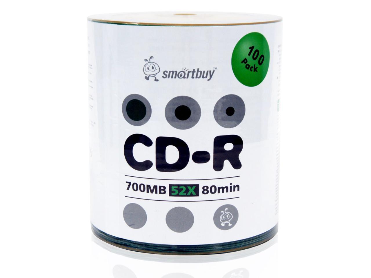 Smartbuy CD-R 52X 700MB 80Min Logo Top Blank Data Recordable Disc (100 Packs)