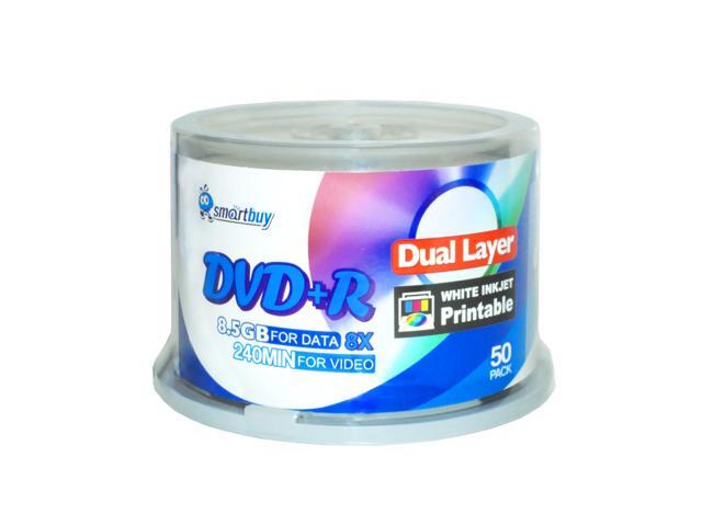 Smartbuy 8X DVD+R DL 8.5GB Dual Layer White Inkjet Hub Printable Music Video Data Recordable Disc