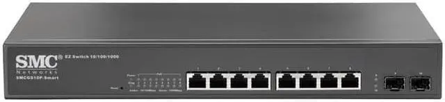 SMC Network’s EZ Switch TM SMCGS10P-Smart is a new 10-port Gigabit Ethernet smart switch providing 8 Gigabit PoE ports and 2 100/1000BASE-X SFP slots. The switch supports a flexible web-based management interface as well as SNMP for both IPv4 and IPv6. The new SMCGS10P-Smart provides a range of feature-rich functions, including VLANs, Spanning Tree, link aggregation, multicasting, security, storm control, and QoS with 8 priority queues. Ideal for users looking to migrate from unmanaged to managed networks, this smart switch is easy to install and perfect for SMB and SOHO businesses.