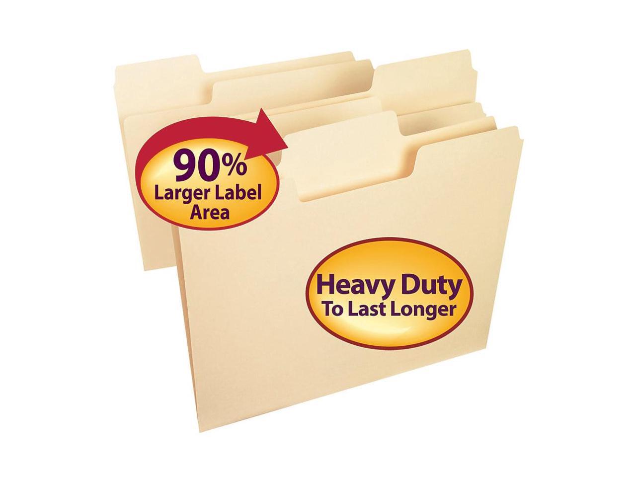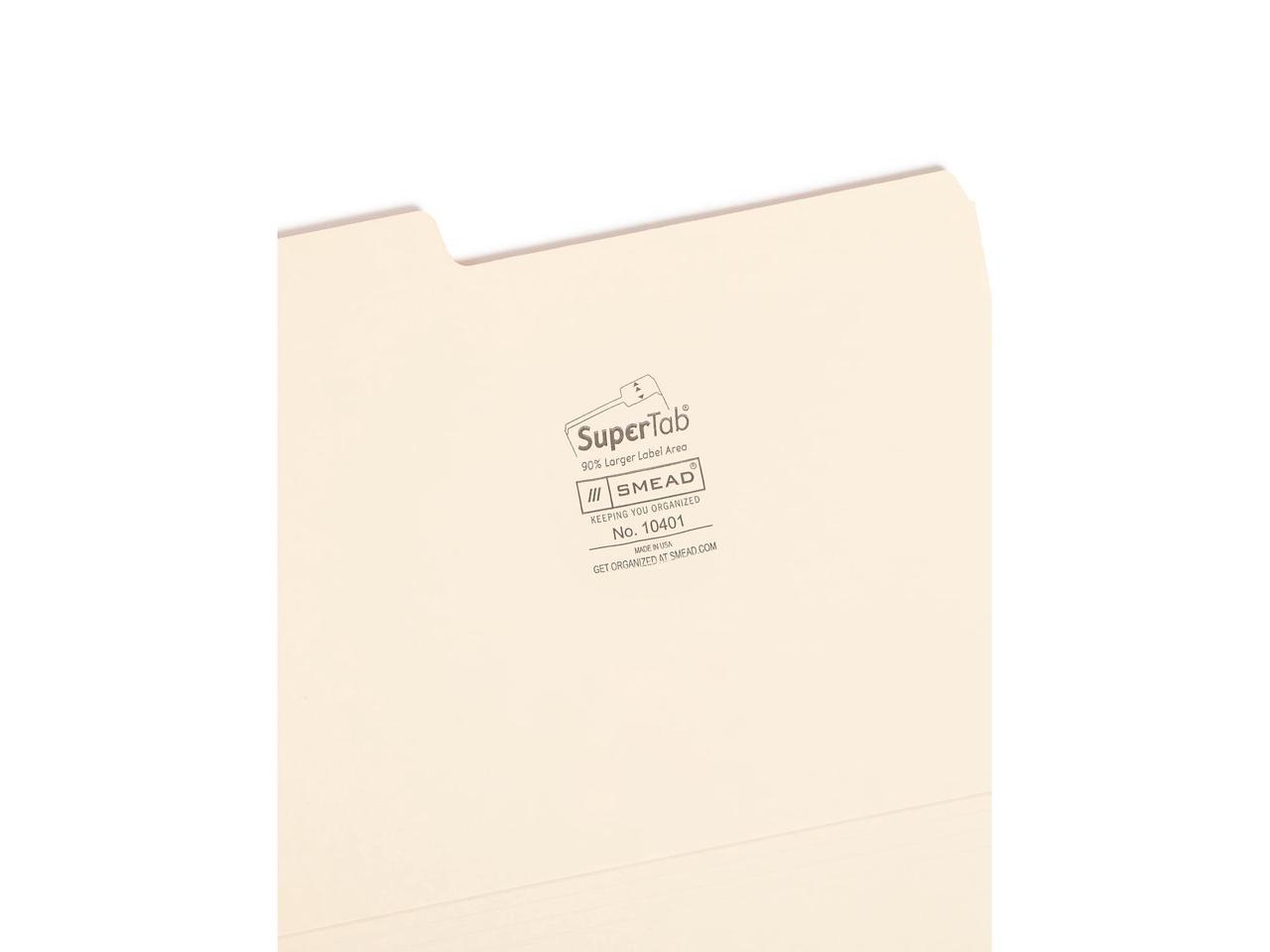 - Smead SuperTab Heavyweight File Folder, Oversized 1/3-Cut Tab, Letter Size, Manila, 50/Box (10401). Letter size to accommodate 8.5" x 11"standard business documents. Scored to expand up to 3/4".