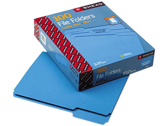 Smead 12043 File Folders, 1/3 Cut Top Tab, Letter, Blue, 100/Box