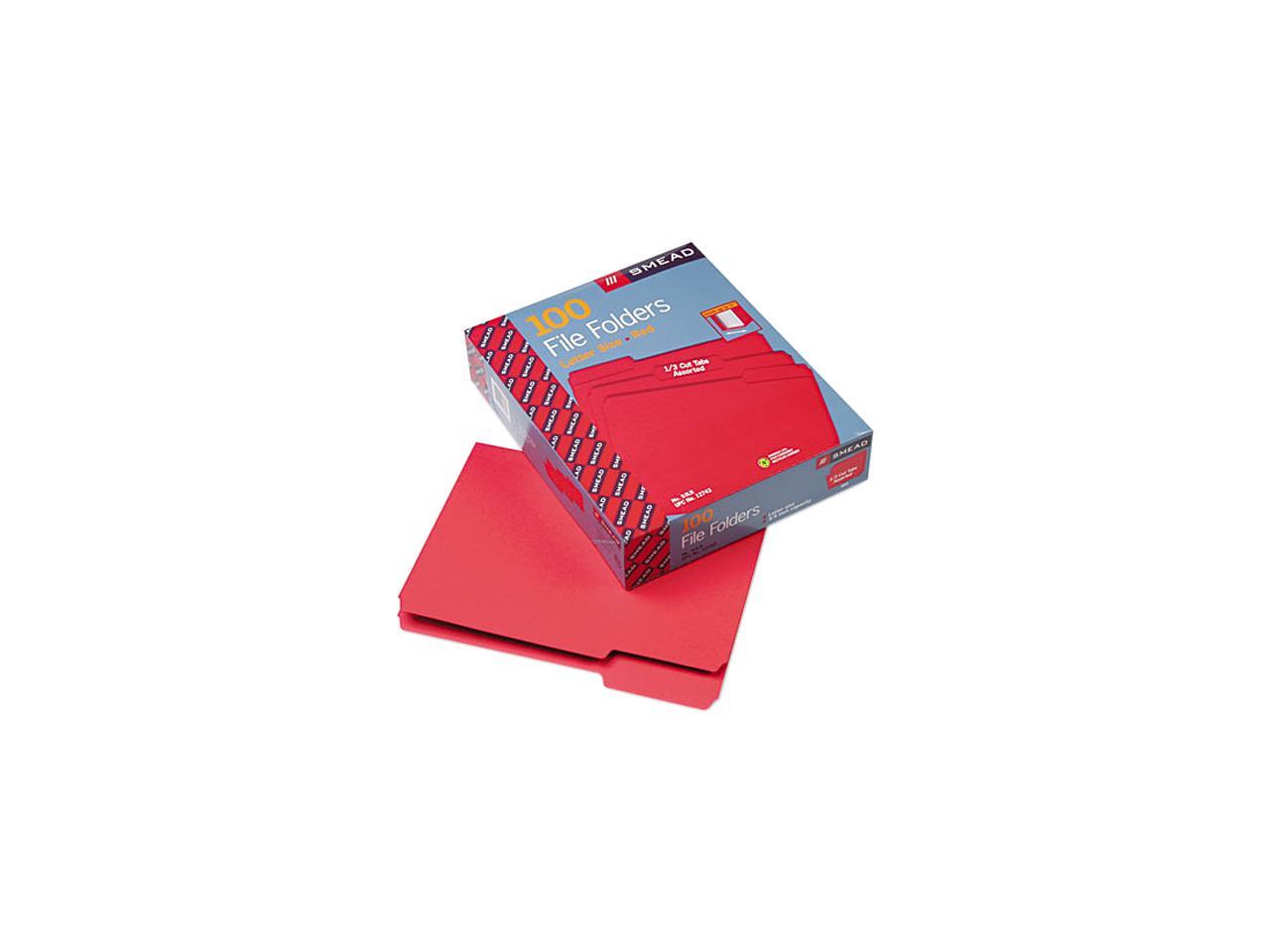 Smead 12743 File Folders, 1/3 Cut Top Tab, Letter, Red, 100/Box