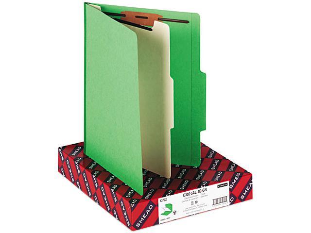 Smead 13702 Top Tab Classification Folder, One Divider, Four-Section, Green, 10/Box