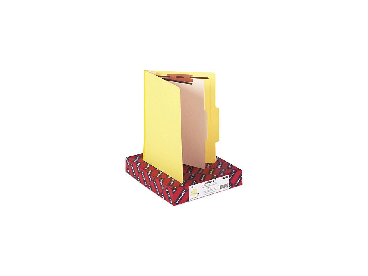 Smead 13704 Top Tab Classification Folder, One Divider, Four-Section, Yellow, 10/Box
