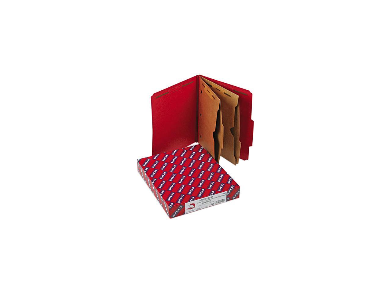 Smead 14082 Pressboard Folders, Two Pocket Dividers, Letter, Six-Section, Bright Red, 10/Box