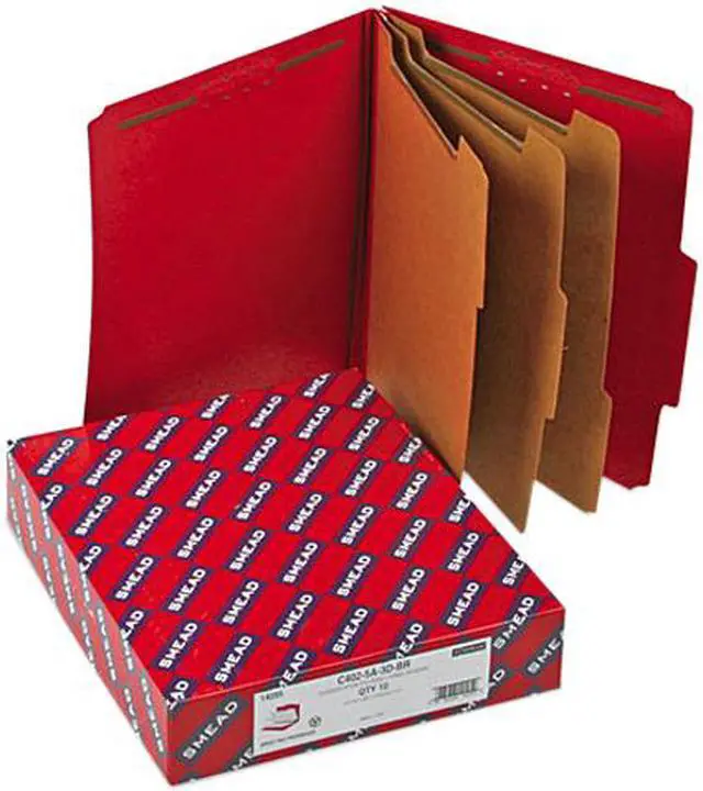 Smead 14095 3" Expansion Folders with 2/5 Cut Tab, Letter, Eight-Section, Bright Red, 10/Box