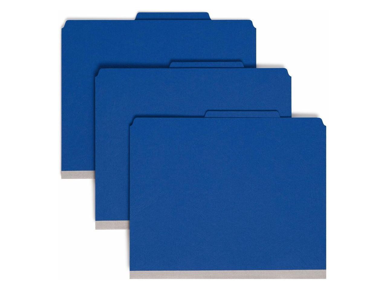 Smead 14200 Colored Top Tab Classification Folders w/SafeSHIELD Fasteners - 2" Expansinon - 2 Dividers - 6 Fasteners - Letter - Dark Blue - 10/Box