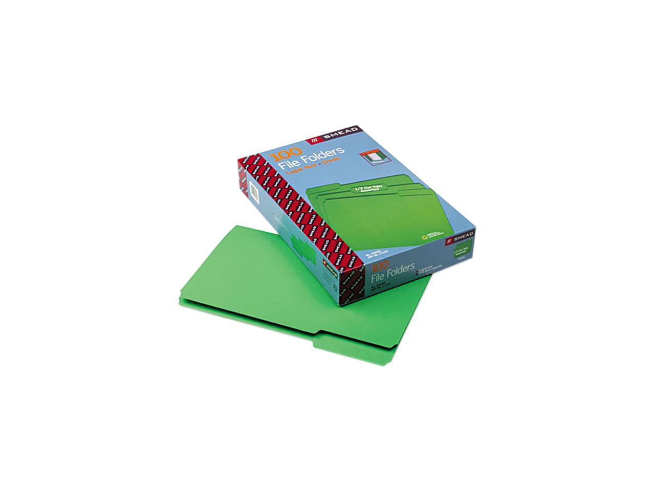 Smead 17143 File Folders, 1/3 Cut Top Tab, Legal, Green, 100/Box