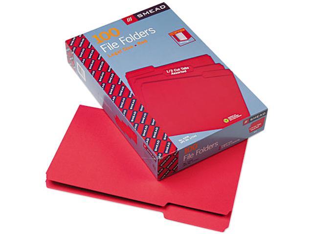 Smead 17743 File Folders, 1/3 Cut Top Tab, Legal, Red, 100/Box