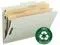 Classification folders with two dividers are made with a high percentage of recycled material for the environmentally conscious office. Sturdy 25 point Pressboard has Tyvek tape in a matching color. Heavy-duty classification folders make excellent project files. Ideal for personnel, real estate, accounting or banking files. Sturdy Tyvek gusset expands to hold 2" of material. 20 point kraft stock dividers are fully taped to the gusset. Classification folders offer 2/5 cut right of center tabs, 2" prong-style fasteners in positions 1 and 3 (two per folder) and 1" twin-prong fasteners on both sides of each divider.