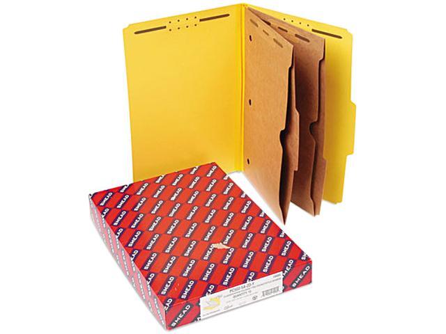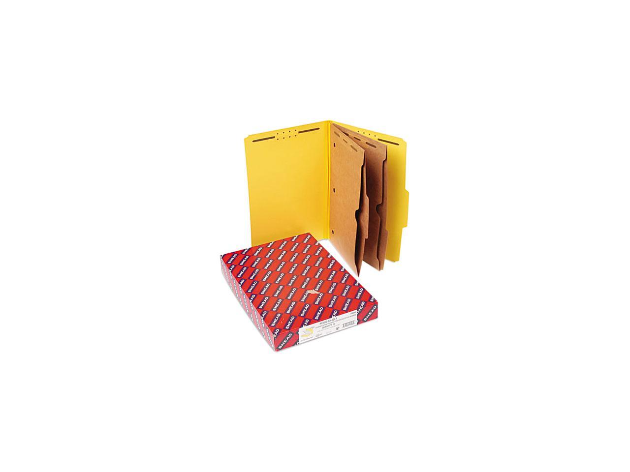 Smead 19084 Pressboard Folders with Two Pocket Dividers, Legal, Six-Section, Yellow, 10/Box