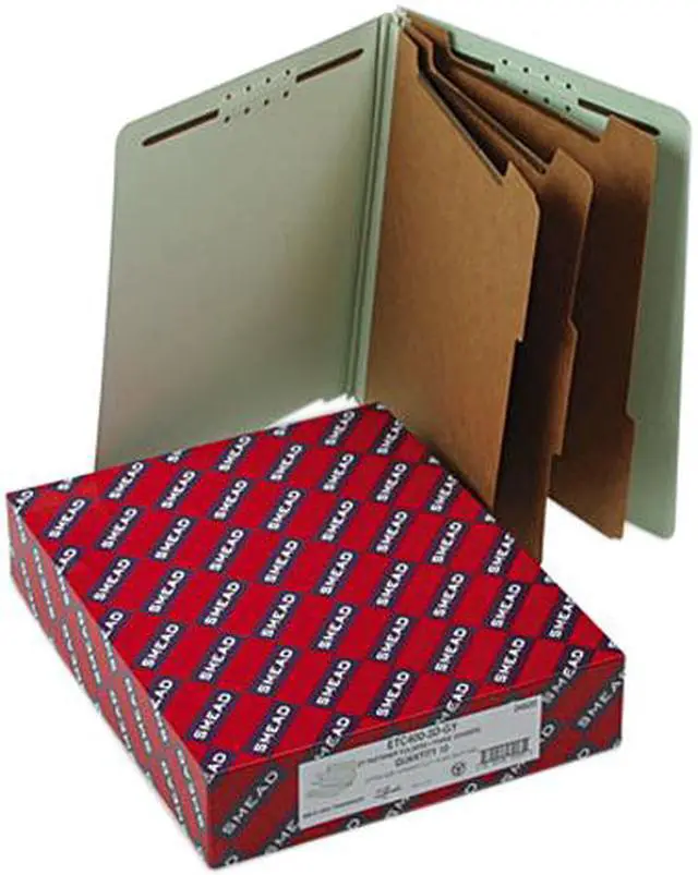 Smead 26820 Pressboard End Tab Classification Folder, Letter, 8-Section, Gray-Green, 10/Box