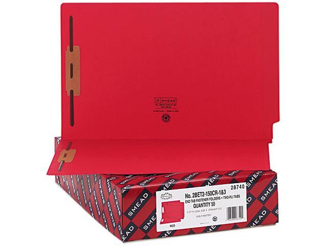Smead 28740 Two-Inch Capacity Fastener Folders, Straight Tab, Legal, Red, 50/Box