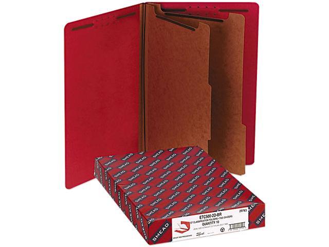 Smead 29783 Pressboard End Tab Folders, Legal, Six-Section, Bright Red, 10/Box