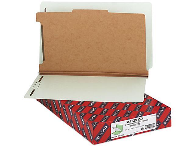 Smead 29800 Pressboard End Tab Classification Folder, Legal, 4-Section, Gray-Green, 10/Box