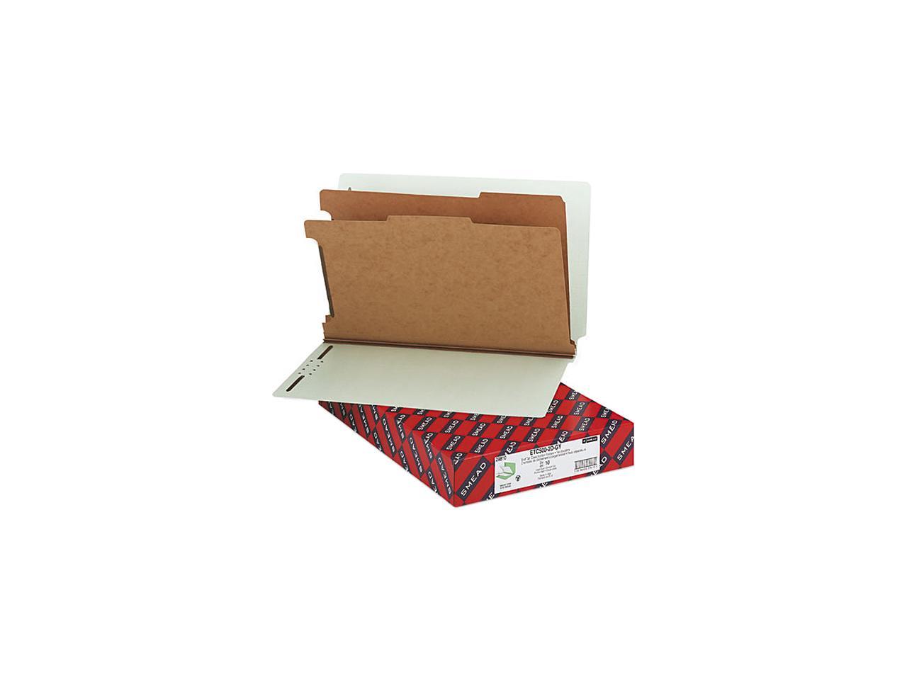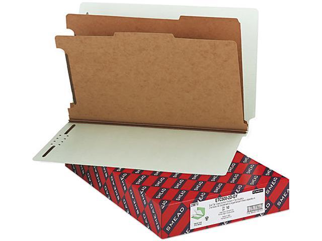 Smead 29810 Pressboard End Tab Classification Folder, Legal, Six-Section, Gray-Green, 10/Box