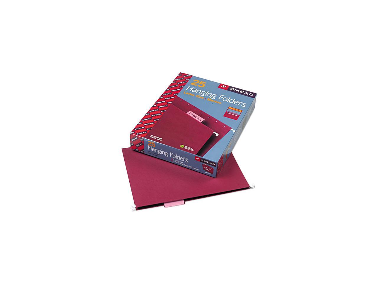 Smead 64073 Hanging File Folders, 1/5 Tab, 11 Point Stock, Letter, Maroon, 25/Box