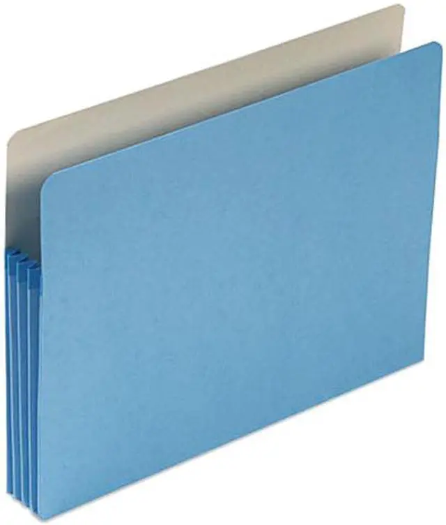 Bright colored file pockets help color-code projects. Rollover gussets reinforced with tear resistant material provides extra strength at critical points. Manila interior makes for easy labeling. Fold-down front for easy access to contents. Bottom and sides fully enclosed for extra security. This product was made using wood sourced from a certified managed forest. Pocket/Wallet Type: Files/Papers; Size: Letter; Overall Expansion: 3.5"; Color(s): Blue.