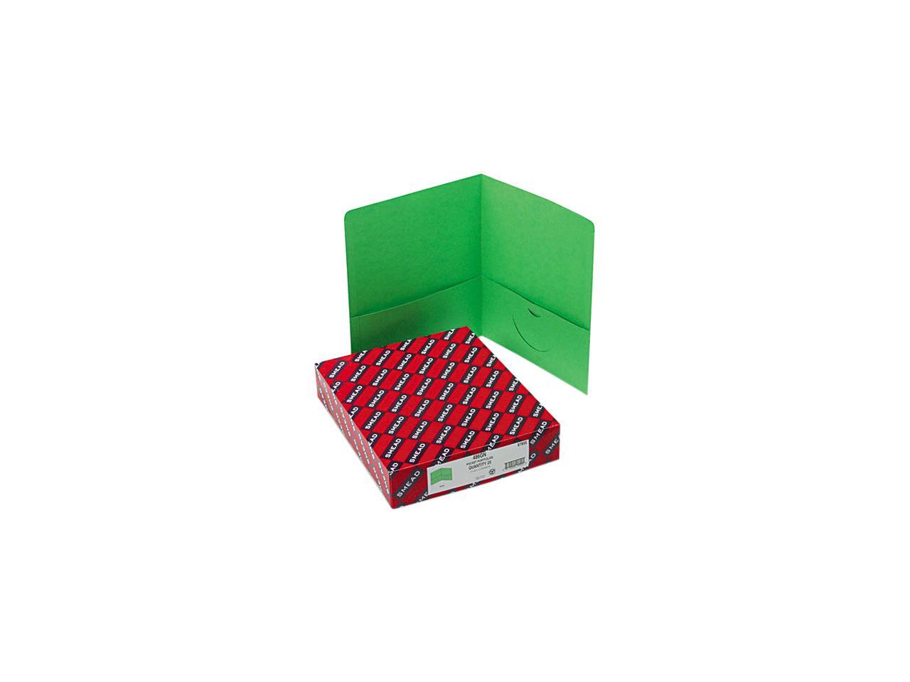 Smead 87855 Two-Pocket Portfolio, Embossed Leather Grain Paper, Green, 25/Box