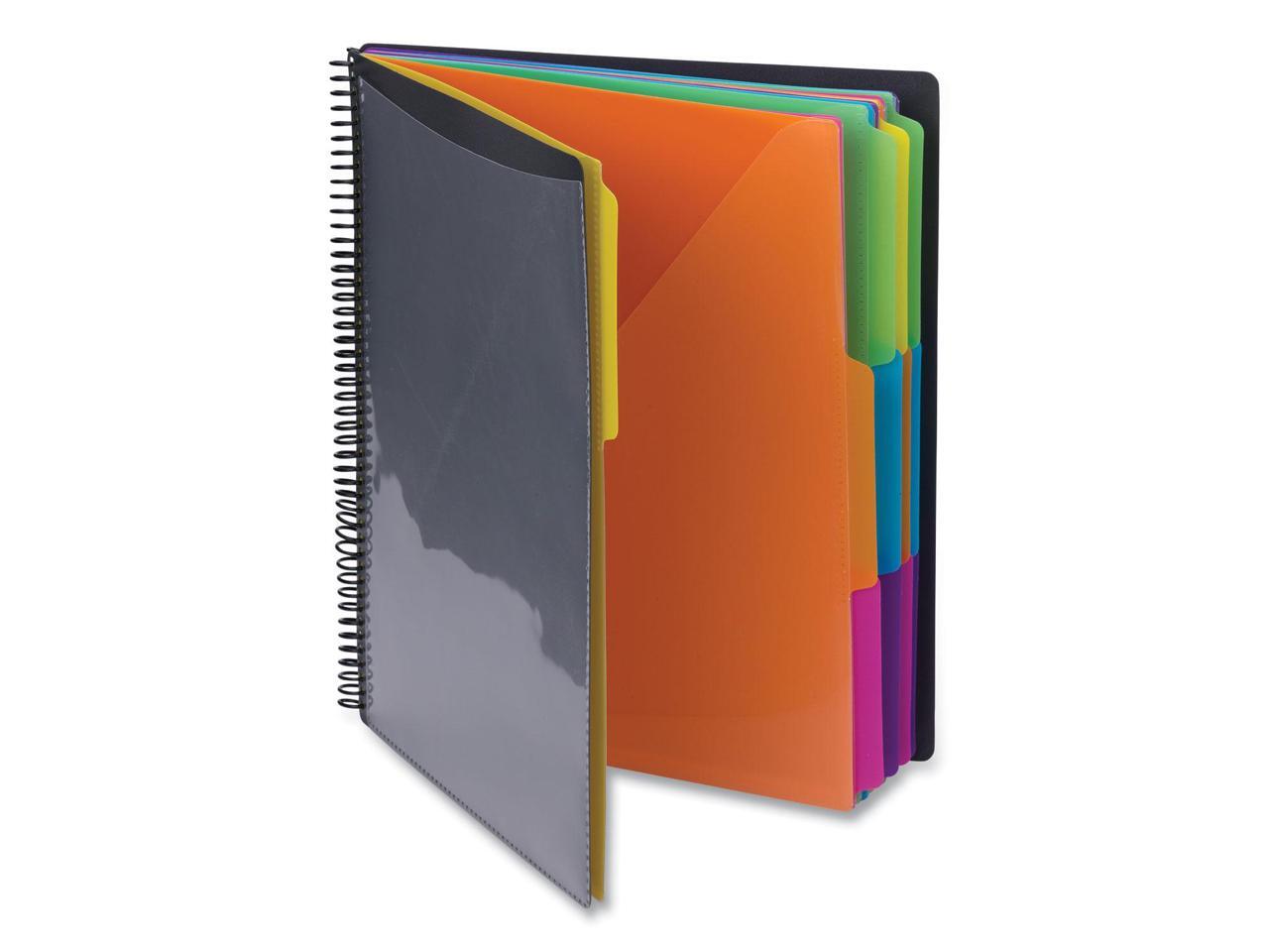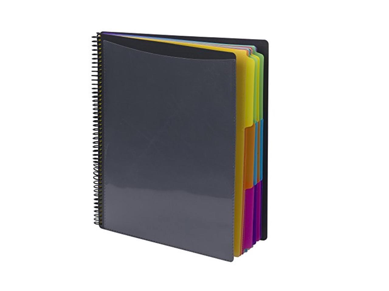 - PRACTICAL DESIGN: The slash pockets with 1/3-cut tabs can hold up to 25 sheets each; the spiral-bound design allows the organizer to lay flat for easy use; tear-resistant and water-resistant poly cover material ensures long-lasting durability.