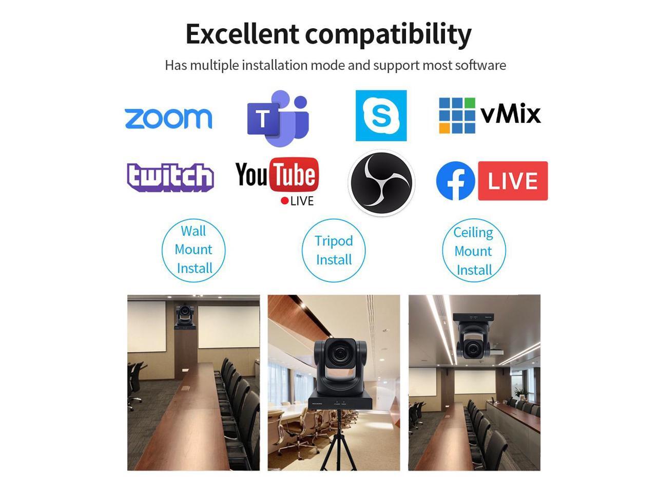 SMTAV 12X Optical Zoom PTZ POE Camera 1080P with USB 3.0 Outputs Live Streaming Camera for Broadcast Conference Events