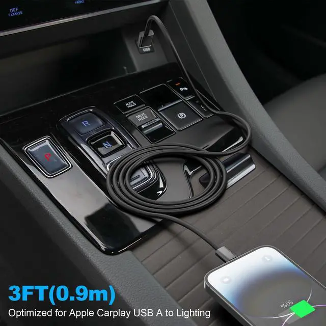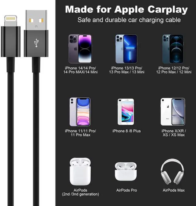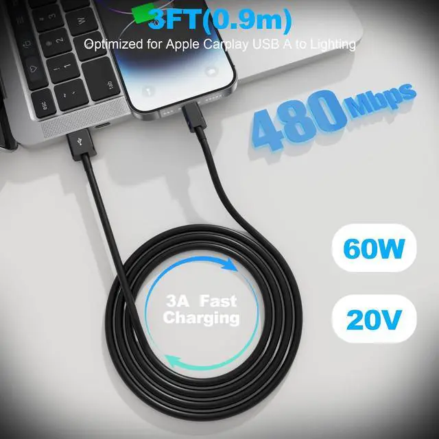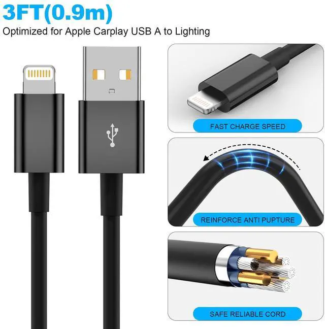 1 pack USB to Lightning car carplay cable Data transmission & charging CableBlack3ft)