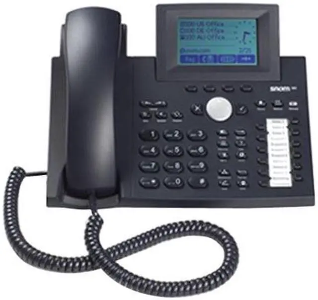 | Features | Tiltable graphical display (128x64 pixels) 47 keys, 13 LEDs 12 programmable function keys Speakerphone Dual Ethernet connection Power over Ethernet Headset connection Additional keypads with 42 programmable function keys SIP RFC3261 Security: SIPS/SRTP, TLS STUN, ENUM, NAT, ICE Codecs: G.711, G.729A, G.723.1, G.722, G.726, GSM 6.10 (Full rate) National Language Support |