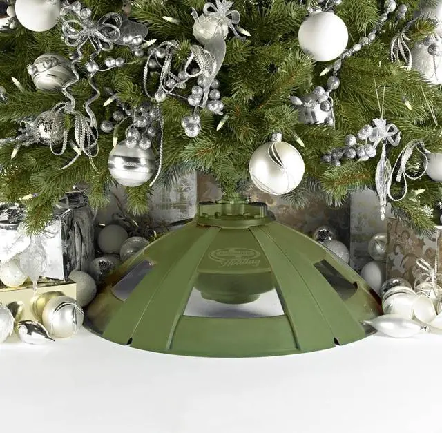Color: GreenMaterial: PlasticHeight: 8.9"Width: 23.6"Depth: 23.6"Country of Origin: United StatesLimited Warranty: 2 YearEnhance your Christmas tree with the Snow Joe Holiday H092 rotating tree stand. The H092 holiday tree stand can accommodate artificial trees weighing up to 150 pounds and measuring up to 8.5 feet tall. Show off the full beauty of your decorated tree as it rotates at a steady pace, a full 360 degrees inside the Holiday Joe tree stand. Unlike other artificial tree stands, this holiday tree stand makes your Christmas tree come to life, as it magically whisks it around for everyone to admire. This rotating tree stand also features an independent on/off switch that lets you control the lights and rotation separately. The H092 Holiday Joe rotating tree stand is ETL certified and comes with a full two year warranty. This holiday tree stand is intended for indoor use only.
