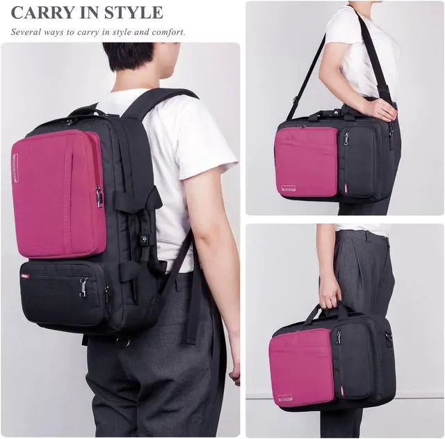 Convertible -- This multifunctional backpack features a top carry handle, a side carry handle and two hidden adjustable/detachable shoulder straps to offer multiple carrying options. With the buckles and hooks, you can convert it to backpack or single shoulder bag or briefcase according to your requirement.