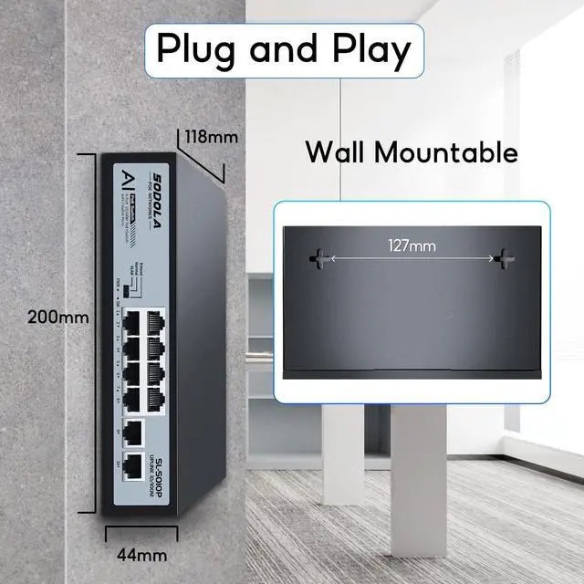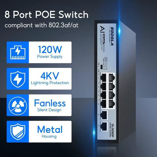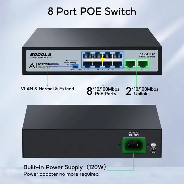 SODOLA 8 Port AI PoE Switch 100Mbps