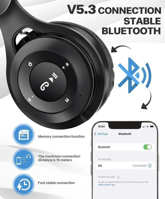 This Bluetooth headsets for kids will bring you: 1. Give your child a good partner, wear the headset, let the child immersed in the world of learning and entertainment; 2. Support wireless/wired modes to meet more requirements; 3. A quieter environment at home or on the road, where parents don't have to put up with the noise of their children playing with their iPad or iPhone; 4. It is a good gifts for Children's Day, Thanksgiving and Christmas. How to connect: Turn on the Bluetooth function of the device - long press the start button for 3 seconds - search for available devices in the Bluetooth menu of the device - the device prompts whether to connect a headphone named M6- click (note: the above steps are required for the first connection, and automatic connection can be achieved again). Unable to connect troubleshooting: 1) Ensure there is power available. Pressing the headphone start button cannot turn it on. Please charge for 10 minutes and then turn it on; 2) Ensure that the Bluetooth device is connected to headphones with the M6 name. Open the Bluetooth list of devices, check the names of connected devices, and ensure they are M6; 3) Ensure Bluetooth wireless mode. Children's headphones have three modes: wireless/MP3/FM. Please press the M key briefly to switch to Bluetooth mode; 4) Delete all old records of previous connections in the device Bluetooth list, shut down, restart the device, and reconnect.