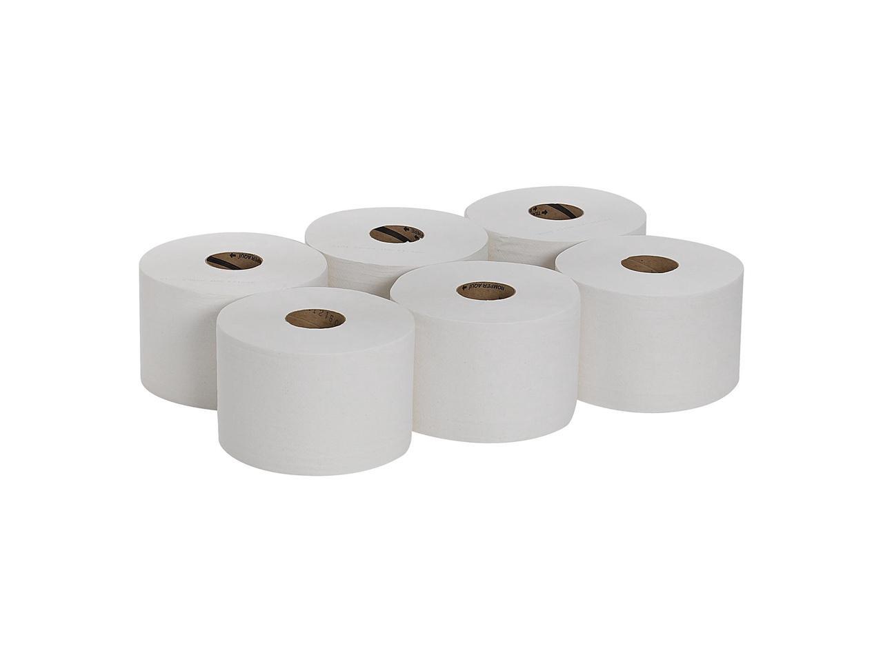 High-capacity roll reduces roll changes. One-at-a-time dispensing reduces consumption compared to jumbo bath tissue.