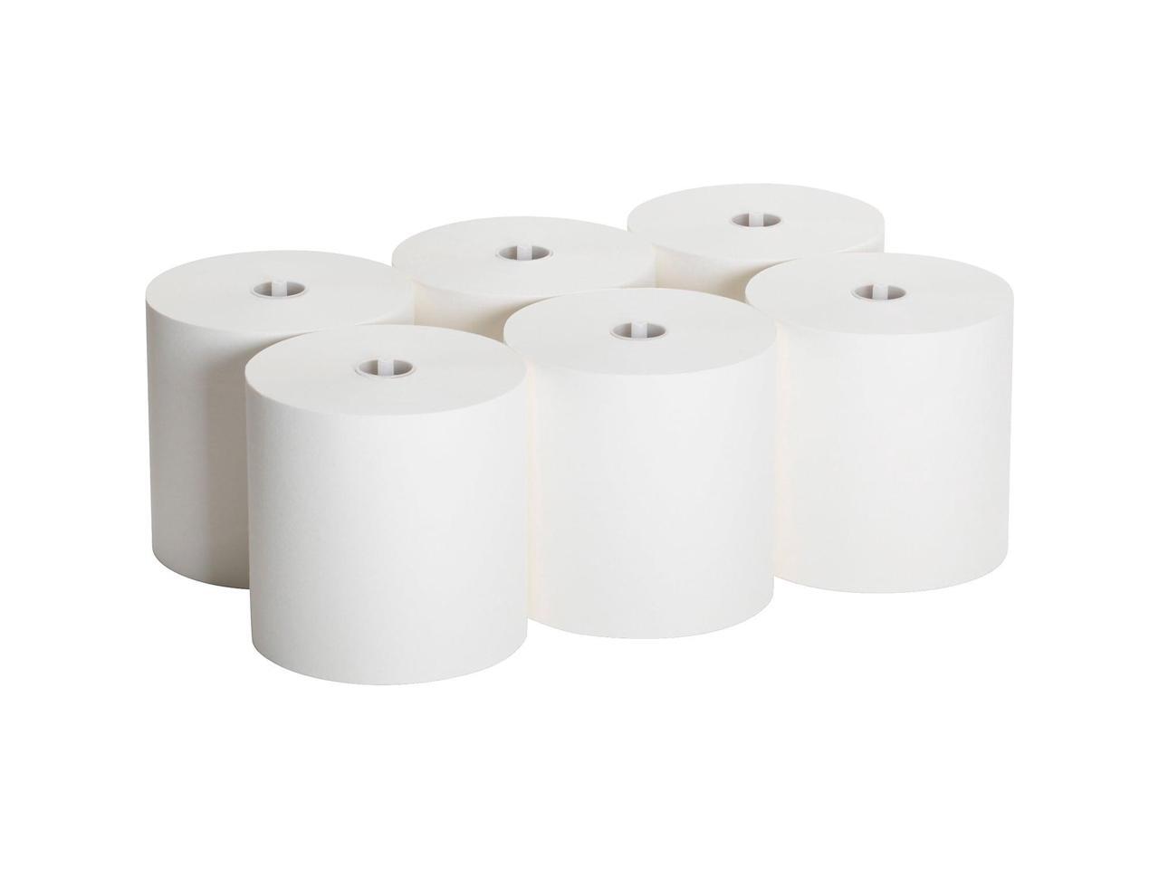 - 1-ply white hardwound paper towels. Towel is uniquely designed with a plugged core to work with the SofPull mechanical touchless towel dispenser. One-at-a-time, touch free dispensing helps minimize usage and helps reduce the risk of cross contamination.