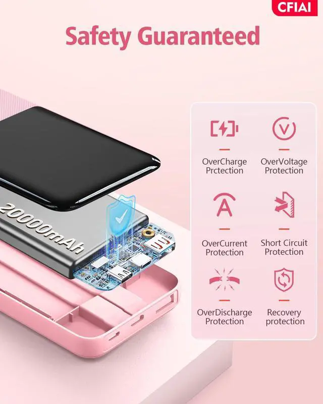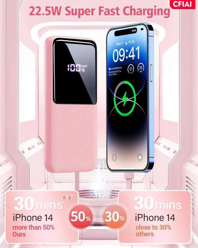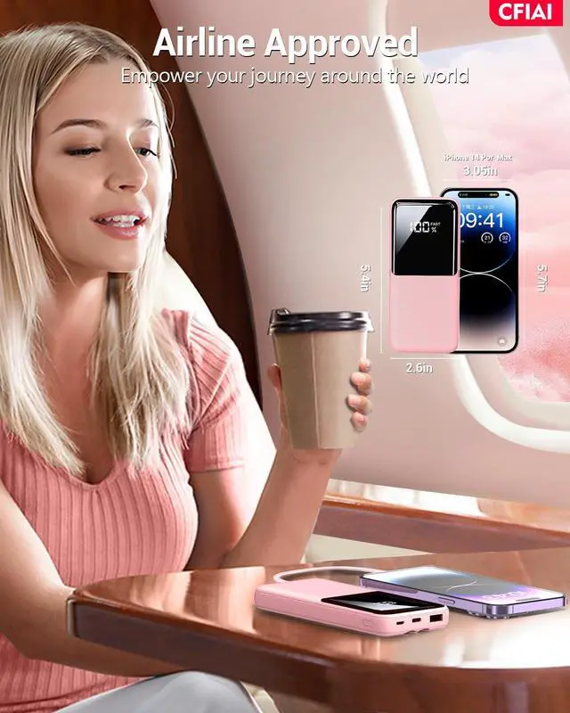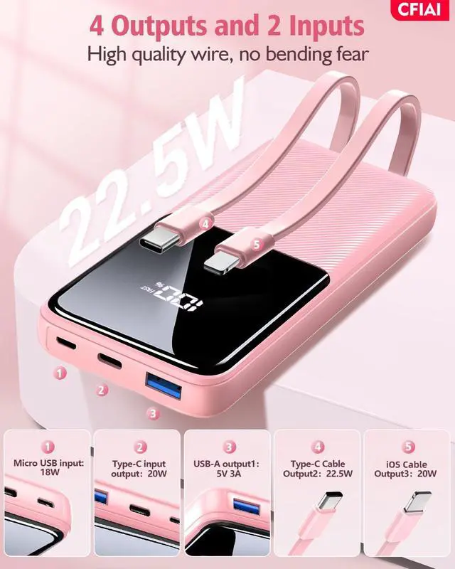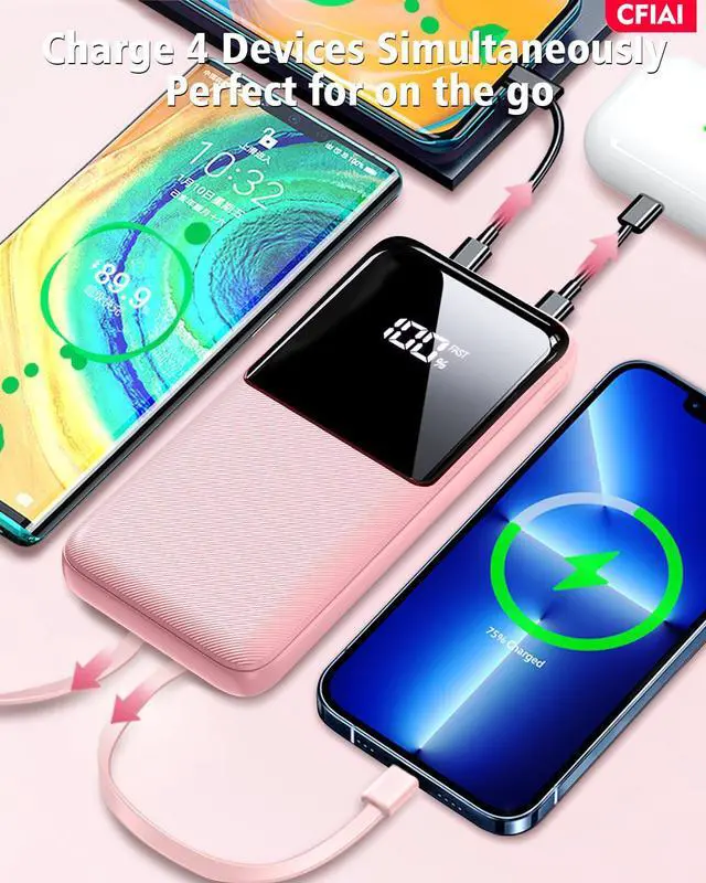 - Wide Compatibility battery pack with 2 Built-In Cables: This portable charger comes with integrated cables for Type C, iOS, and 3 input ports (Micro USB, Type-C, USB-A), ensuring compatibility with a wide range of devices like iPhone 17/17 Pro/ 17 Pro Max/17 Air/16/16 Pro/16 Pro Max/15/15 Pro/15 Pro Max/14/13/12, Samsung Galaxy, Google Pixel, tablets, iPad series, earbuds, smartwatches, and and other Android, tablets.