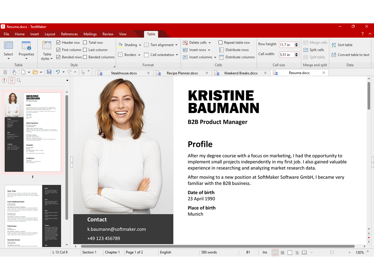 - PlanMaker, spreadsheet for designing appealing worksheets
