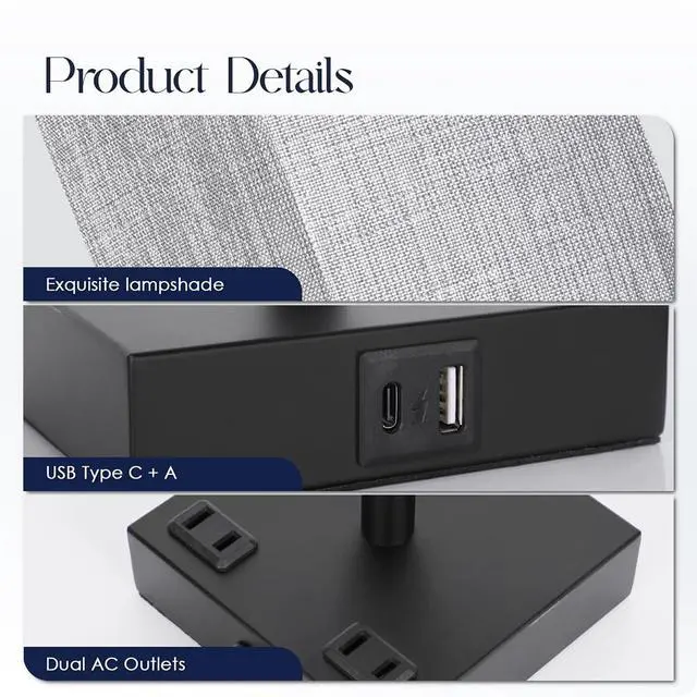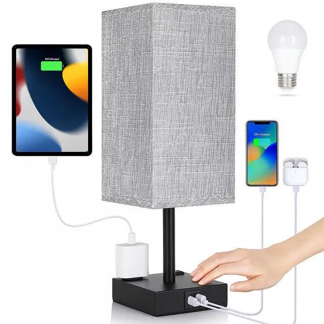 Illuminate your bedroom with this convenient Bedside Table Lamp. This touch-sensitive lamp features USB C+A charging ports and AC outlets, combining functionality with elegance. With a 3-way dimmable function, you can easily adjust the brightness to suit your needs. Equipped with a 6W LED bulb providing 300 lumens of light, this lamp ensures a warm and inviting ambiance. Estimated to cost $1.21 per year based on 5 hours of daily use, it offers both efficiency and style. Complete with included bulbs, this lamp is a practical addition to your living space, perfect for enhancing your bedroom or living room decor.