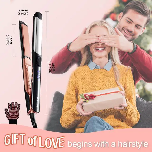 | Gift box list | It includes a 1-inch 2-in-1 flat iron hair straightener and a heat-resistant hand cover. The exquisite packaging is perfect for giving as a gift |